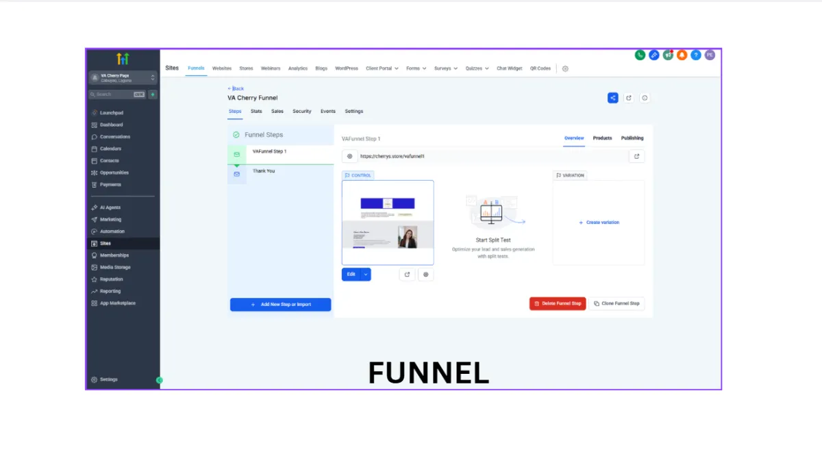 Funnel and landing page building